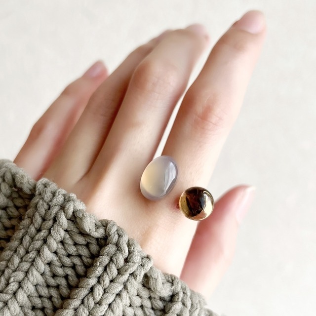 【JORIE】合わせやすさNo. 1 ❤️大人のニュアンスカラーフォークリング グレーオニキス スモーキークォーツ