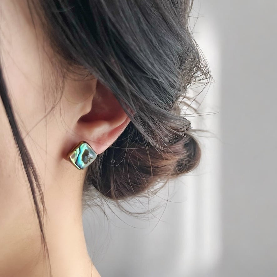 色彩豊かな照りが美しいアバロンシェルの耳飾りです。