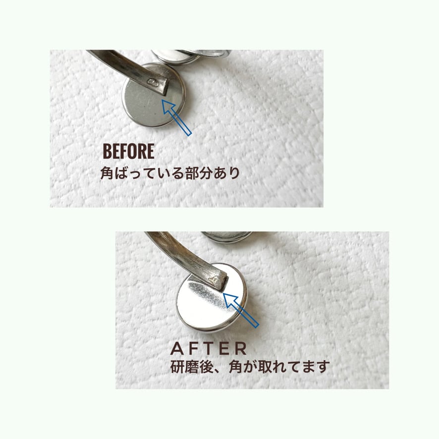 リング部分の金具が切りっぱなしの状態で