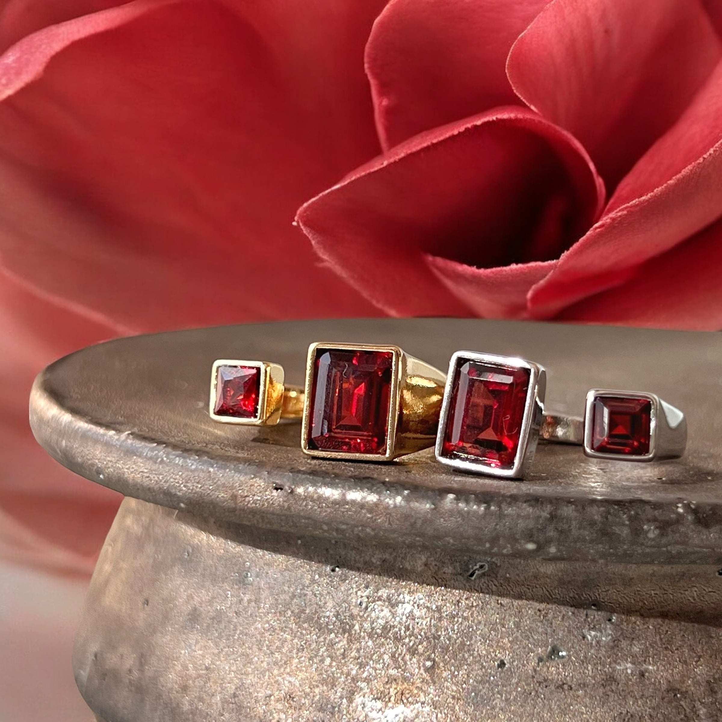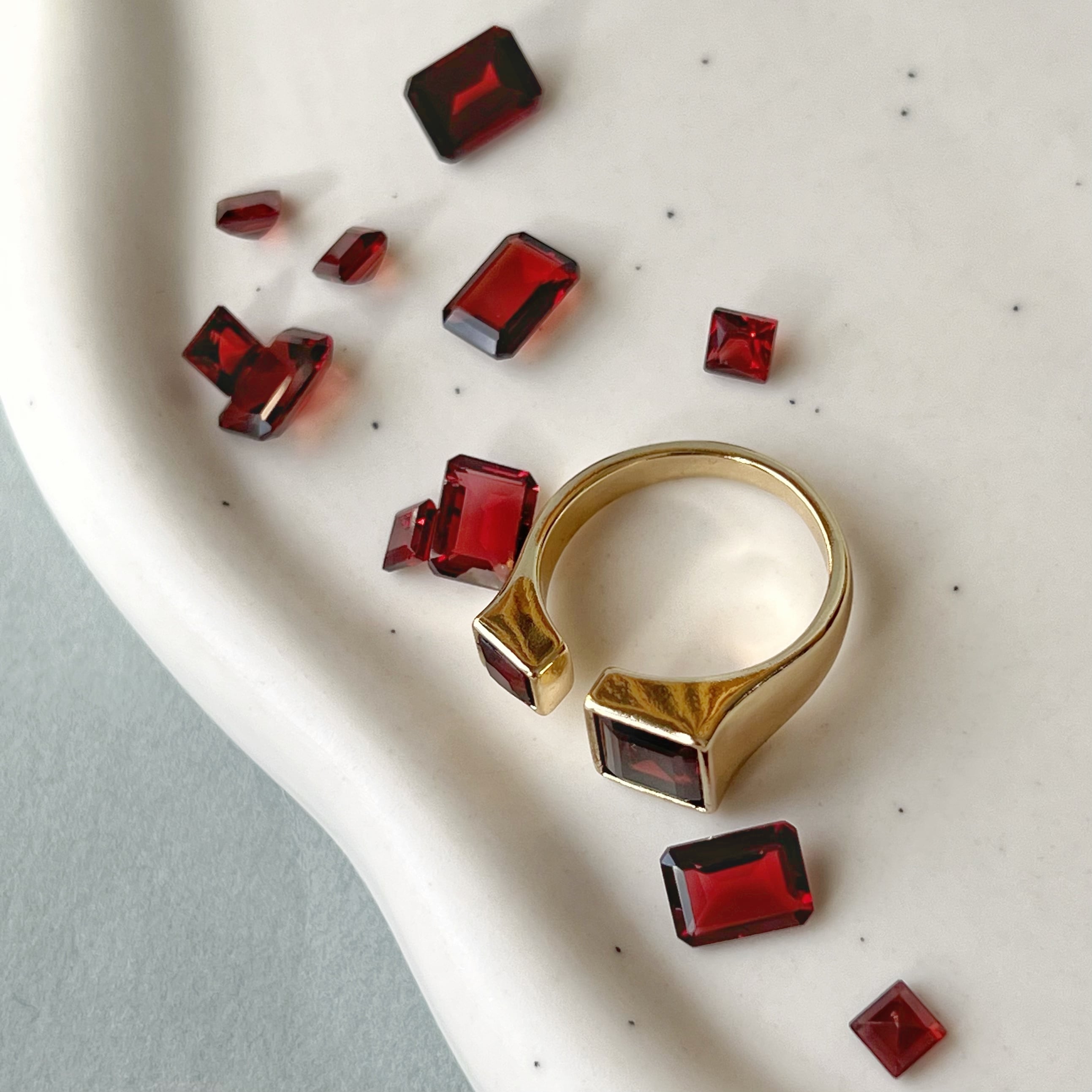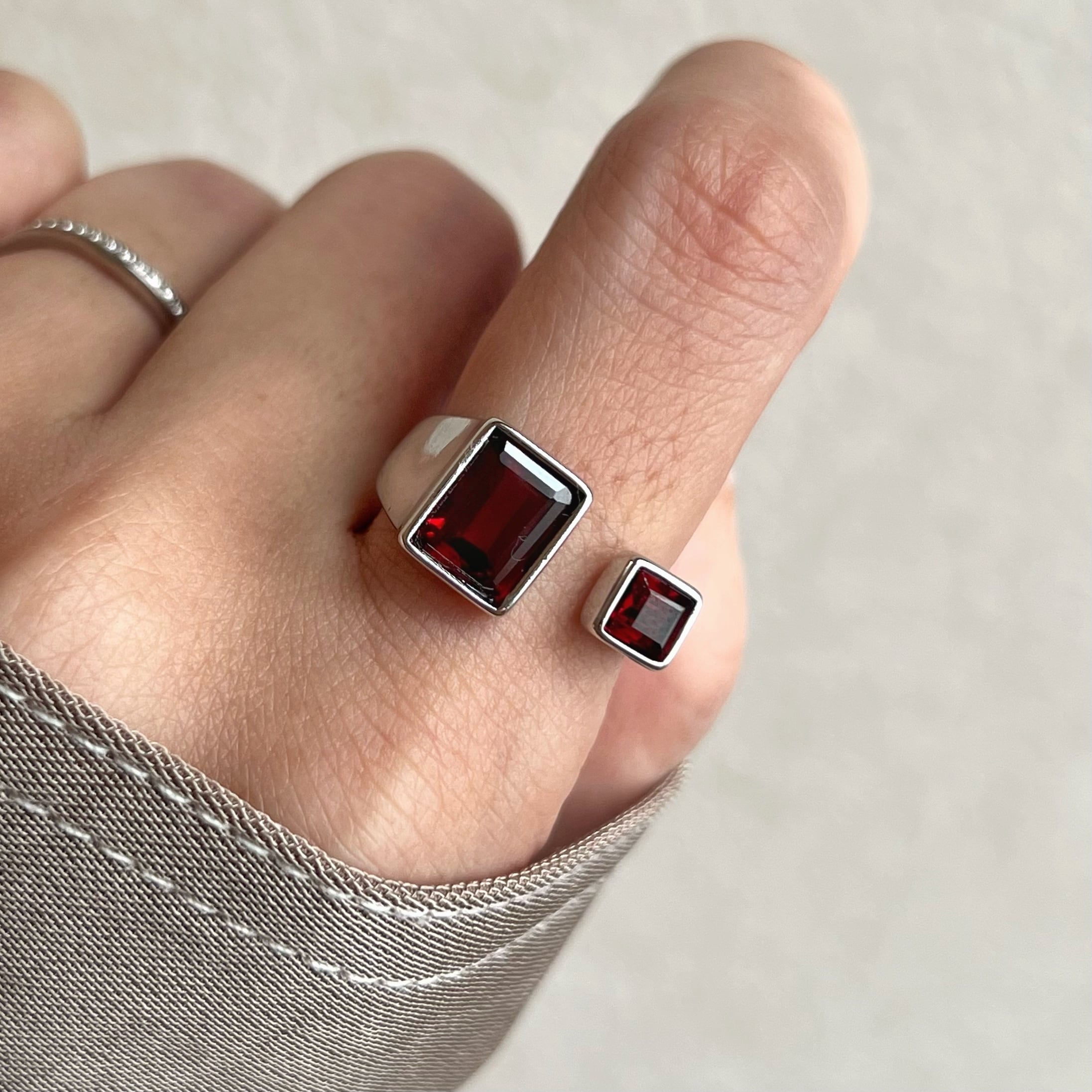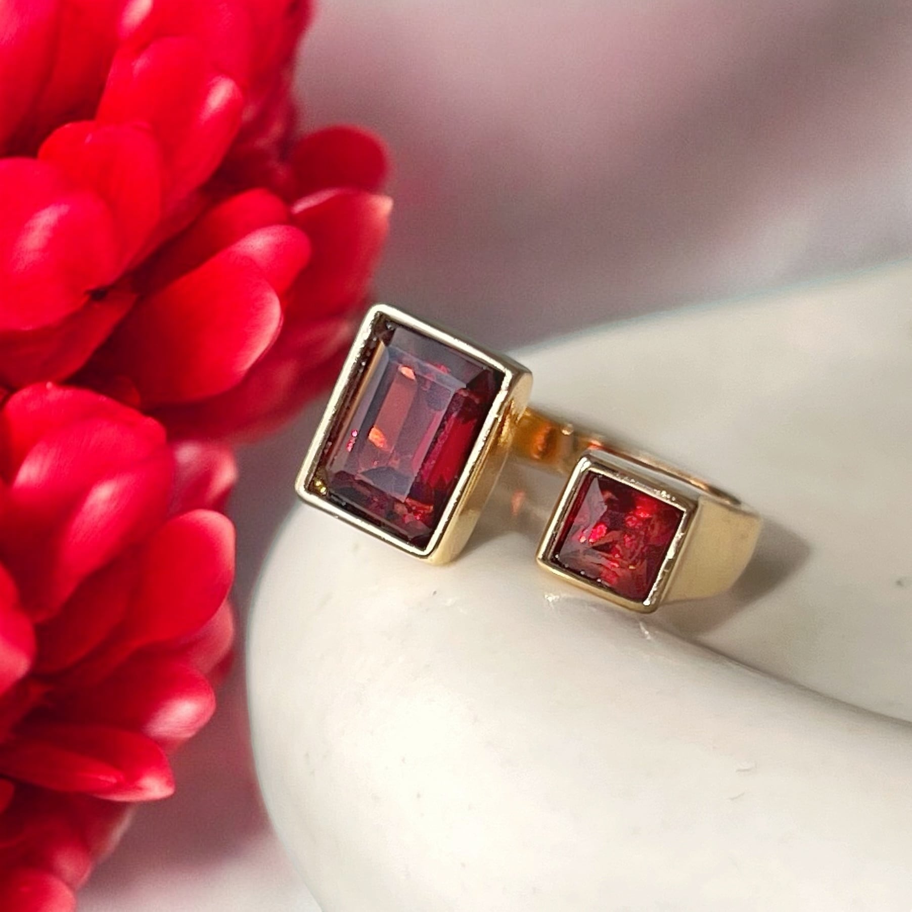 【JORIE】ガーネットの真紅フォークリング 大粒 1月誕生石