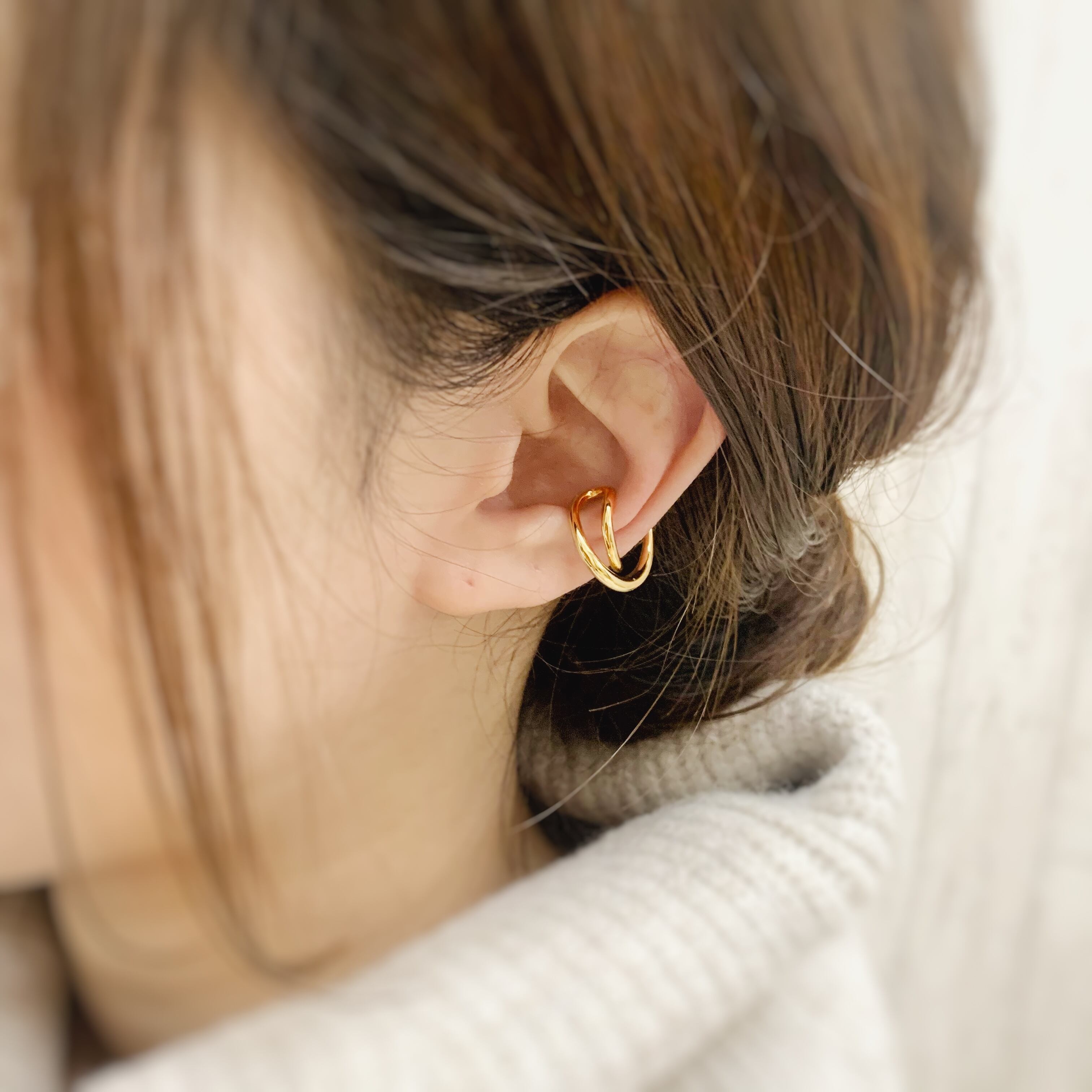 ウェーブのように重なる2本の線が微妙なニュアンスを生み出します。トレンド感のあるイヤーカフなので初めての方にもぴったり◎