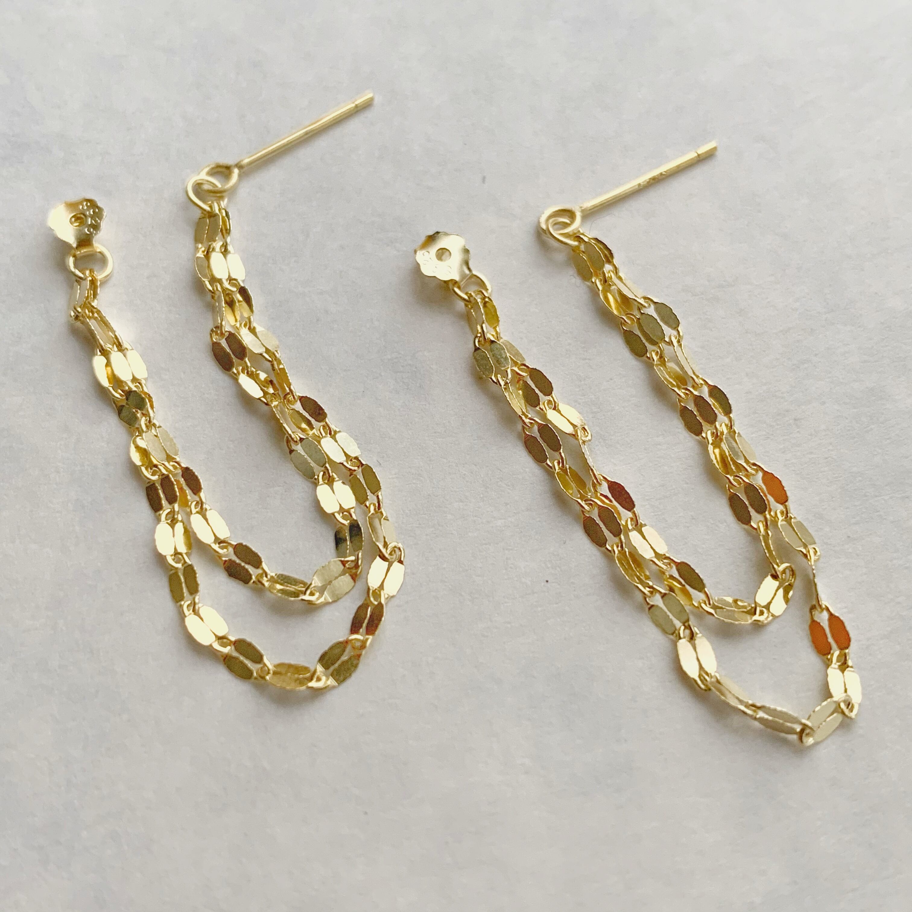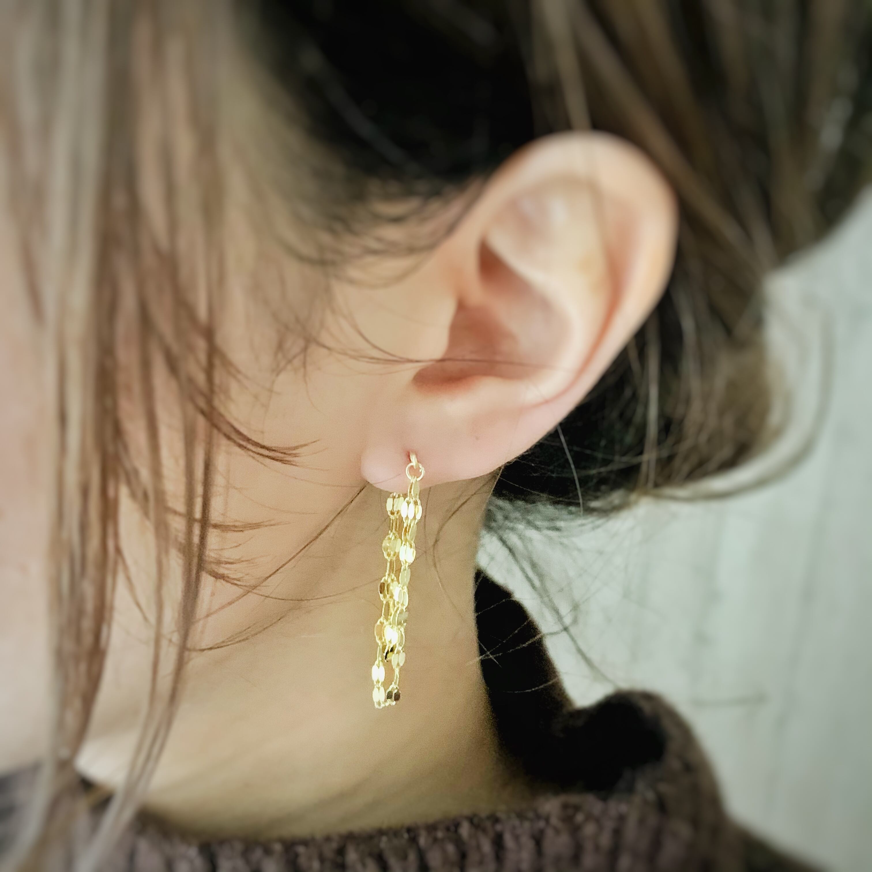 耳を挟んだ時に2本のチェーンのデザインの